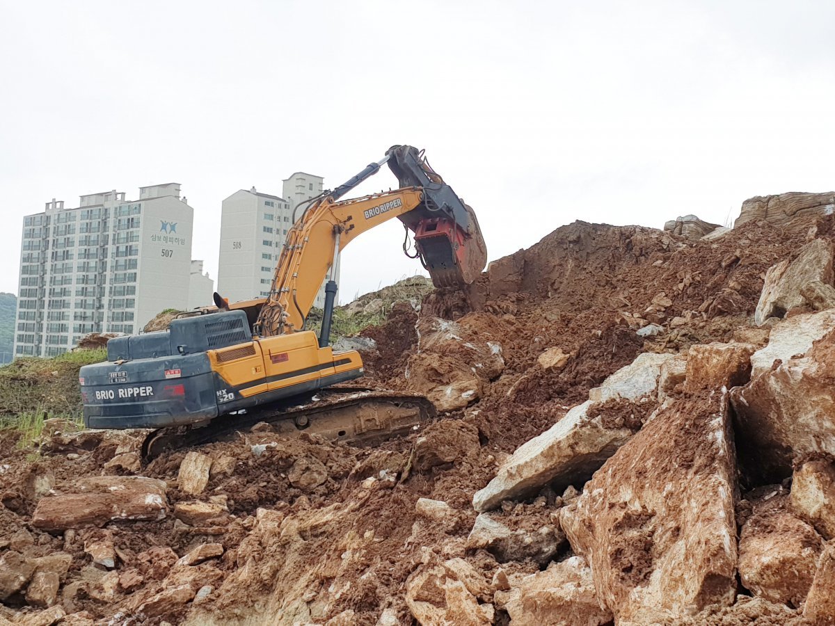 특히 검단신도시 현장에서는 대동이엔지에서 제작한 ‘브리오 전용기’를 사용한 ‘BRMC(Brio Ripper Machine for rock Crushing) 공법’이 적용됐다. BRMC 공법은 암 파쇄 시 발생하는 진동, 소음의 영향이 적어 타 공법에 비해 작업 효율성이 높다. 또한 연암 이하의 절리성 암반의 경우, 천공 및 2차 파쇄가 필요 없어 작업 공정이 간단하다.