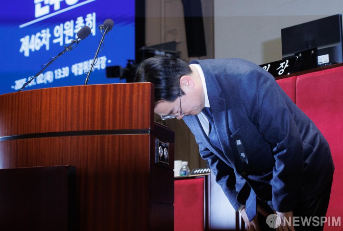 [서울=뉴스핌] 윤창빈 기자 = 박찬대 더불어민주당 원내대표가 2일 오후 서울 여의도 국회에서 열린 비상의원총회에서 인사를 하고 있다. 2025.01.02 pangbin@newspim.com |