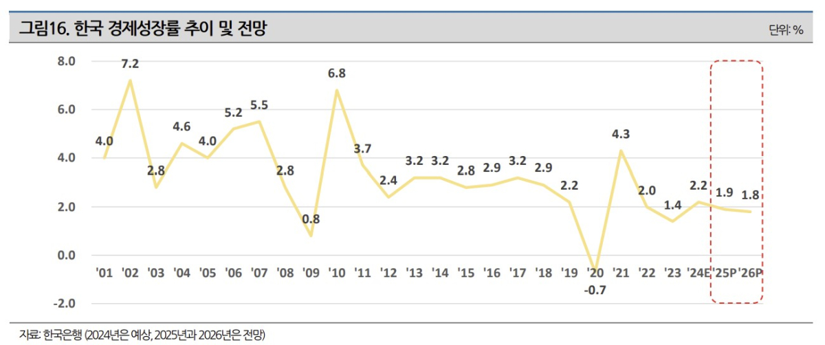 최근 비상계엄과 탄핵소추안 가결 등 한국의 정치적 불확실성에도 불구하고 글로벌 신용평가사들이 한국의 국가 신용등급 영향은 크지 않다고 밝혔으나, 국내 신용평가사에서 한국의 장기 저성장 기조, 국고채 발행 급증에 따른 GDP 대비 정부부채 비율 상승이 국가 신용등급 하방 압력을 높일 수 있다고 지적한 것이다.