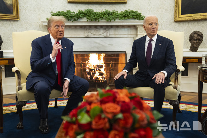 [워싱턴=AP/뉴시스] 조 바이든(오른쪽) 미국 대통령이 지난해 11월13일(현지시각) 백악관 집무실에서 도널드 트럼프 대통령 당선인과 대화하고 있다. 2025.01.03. |