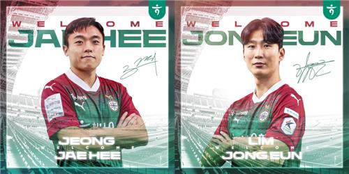 (서울=연합뉴스) 배진남 기자 = 프로축구 K리그1 대전하나시티즌은 3일 측면 공격수 정재희(30)와 베테랑 수비수 임종은(34)을 영입했다고 밝혔다.