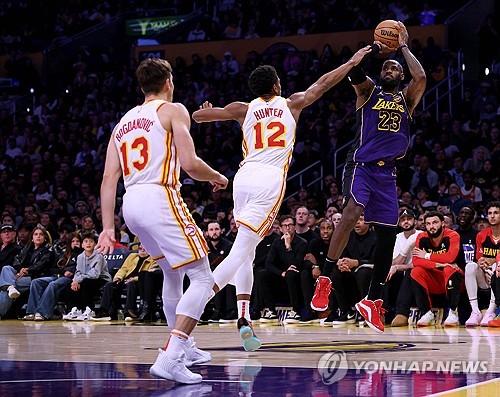 제임스는 4일(한국시간) 미국 캘리포니아주 로스앤젤레스의 크립토닷컴 아레나에서 열린 애틀랜타 호크스와의 2024-2025 NBA 정규리그 홈 경기에서 30점 8어시스트를 올리며 레이커스의 119-102 승리를 이끌었다.
