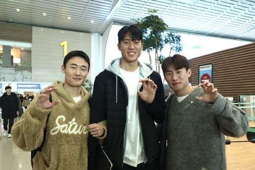 전지훈련 떠나는 울산의 엄원상, 허율, 이희균(왼쪽부터) |