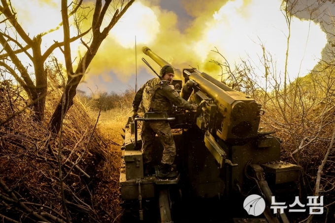 [도네츠크 로이터=뉴스핌] 장일현 특파원 = 지난 18일(현지시간) 우크라이나 동부 돈바스 지역 최전선인 도네츠크주(州) 차시브야르 마을에서 우크라이나군 제24기계화여단의 2.5인치 '히아신스-s' 자주 곡사포가 불을 뿜고 있다. 2024.11.20. ihjang67@newspim.com |