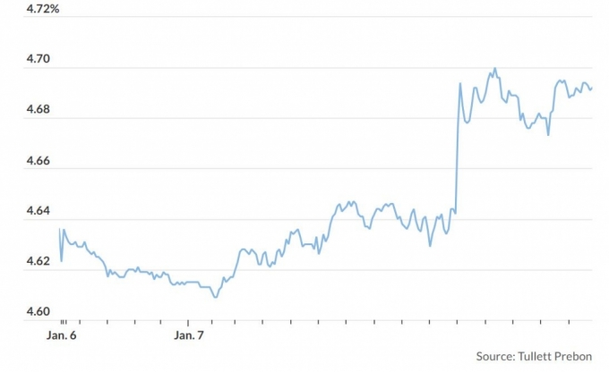 이날 국채수익률 급등은 미국 공급관리협회(ISM)의 지난해 12월 서비스 물가지수가 전월 58.2에서 64.4로 상승한데다 지난해 10월 미국의 구인 규모가 예상치를 웃돌며 노동력 수요가 강력함을 보여줬기 때문이었다.