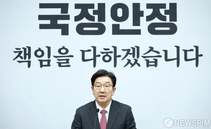 [서울=뉴스핌] 정일구 기자 = 권성동 국민의힘 원내대표가 8일 오전 서울 여의도 국회에서 열린 의원총회에서 모두발언을 하고 있다. 2025.01.08 mironj19@newspim.com