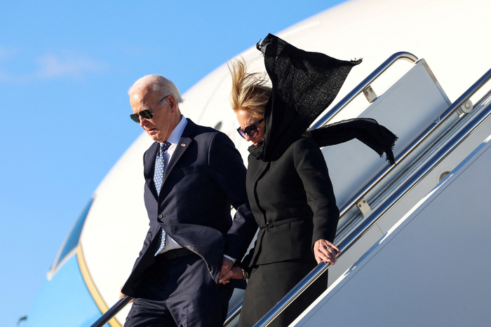 조 바이든 미국 대통령. U.S. President Joe Biden and first lady Jill Biden disembark Air Force One, as Jill Biden‘s scarf flies, upon their arrival in New Orleans, Louisiana, U.S., January 6, 2025. REUTERS/Kevin Lamarque TPX IMAGES OF THE DAY |