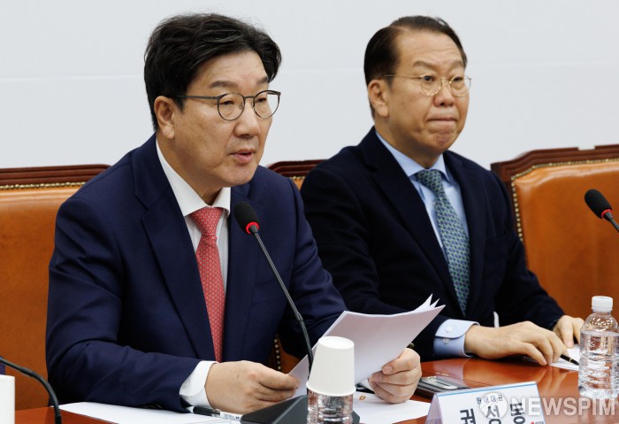 [서울=뉴스핌] 윤창빈 기자 = 권성동 국민의힘 원내대표가 9일 오전 서울 여의도 국회에서 열린 비상대책위원회의에서 모두발언을 하고 있다. 2025.01.09 pangbin@newspim.com