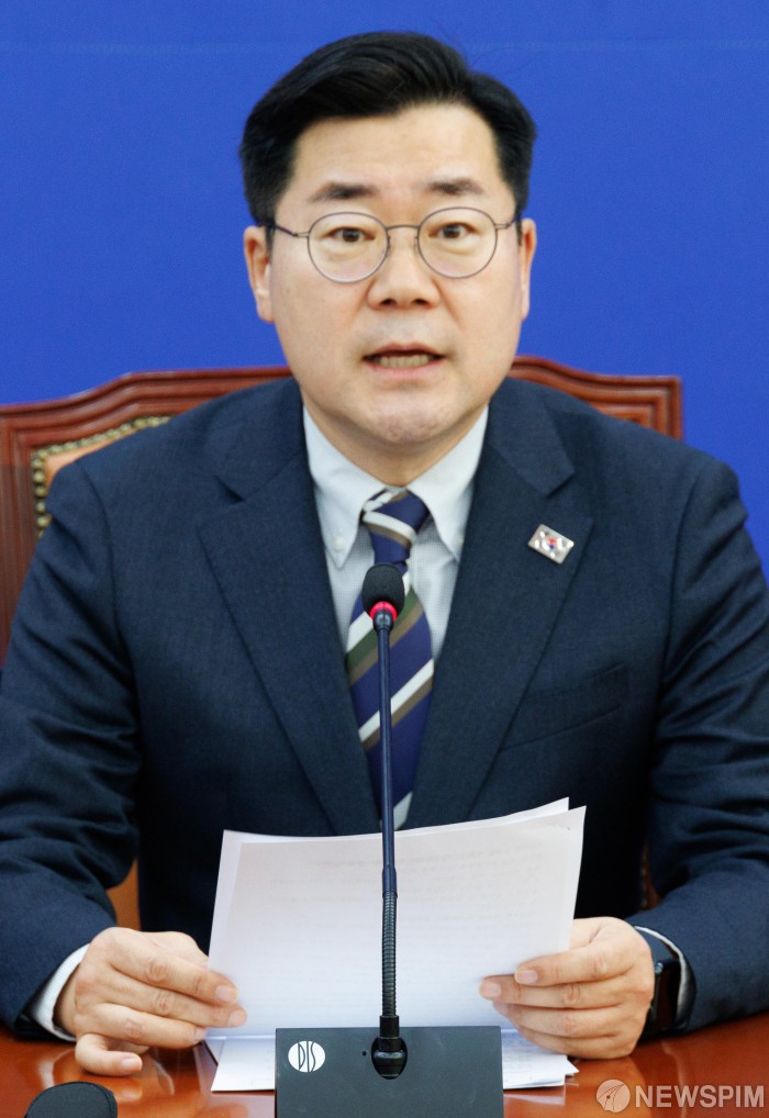[서울=뉴스핌] 윤창빈 기자 = 박찬대 더불어민주당 원내대표가 9일 오전 서울 여의도 국회에서 열린 정책조정회의에서 모두발언을 하고있다. 2025.01.09 pangbin@newspim.com