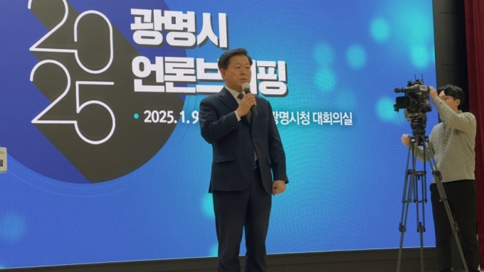 박승원 광명시장이 9일 신년기자회견을 통해 광명시흥 3기 신도시 조성계획을 발표하고 있다. /사진=권현수기자 |