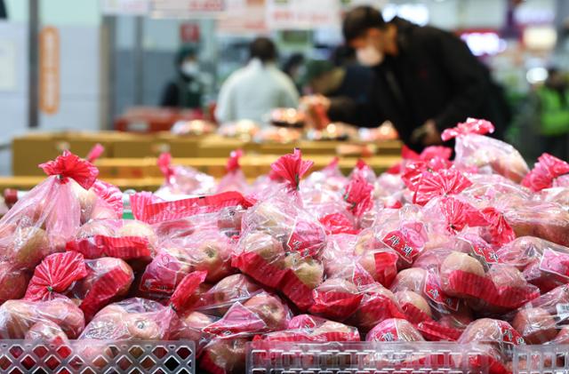 정부는 7일부터 27일까지 3주간 성수품 물가 안정을 위해 16대 설 성수품 26만5,000톤을 공급한다. 역대 최대 규모다. 주요 농산물의 정부 보유물량도 푼다. 배추(4,500톤)·무(5,500톤)·사과(3만 톤)·배(1만 톤) 등은 평시 대비 3.9배까지 확대 공급하고, 소·돼지고기도 평시 대비 1.4배인 11만 톤을 공급하기로 했다. 명태·오징어 같은 대중성 어종의 수산물도 정부 물량 1만1,000톤을 마트나 시장에 바로 공급해 최대 50% 저렴한 가격으로 구입할 수 있도록 한다.