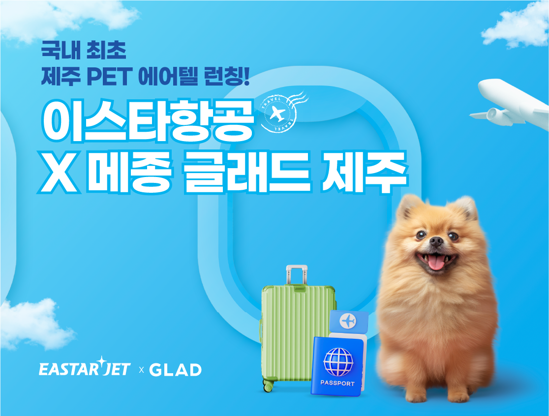 [헤럴드경제=김성우 기자] 이스타항공(대표 조중석)이 메종 글래드 제주와 함께 국내 항공사 최초로 반려견 전용 ‘펫 에어텔’ 상품을 출시했다고 10일 밝혔다.
