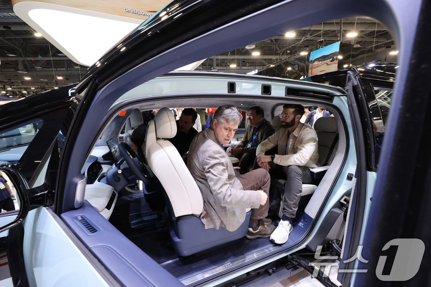 (라스베이거스(미국)=뉴스1) 신웅수 기자 = 세계 최대 IT(정보기술)·가전 전시회 'CES 2025' 폐막을 하루 앞둔 9일(현지시간) 미국 네바다주 라스베이거스 컨벤션센터(LVCC)에 마련된 중국 지커 전시관에서 관람객들이 전기차를 체험하고 있다. 2026.1.10/뉴스1