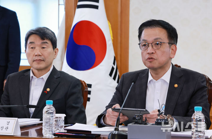[서울=뉴시스] 조수정 기자 = 최상목 대통령 권한대행 부총리 겸 기획재정부 장관이 10일 정부서울청사에서 열린 '주요 현안 해법회의(사회1 분야)'를 주재하며 발언하고 있다. 왼쪽은 이주호 사회부총리 겸 교육부 장관. (대통령실통신사진기자단) 2025.01.10. chocrystal@newsis.com |