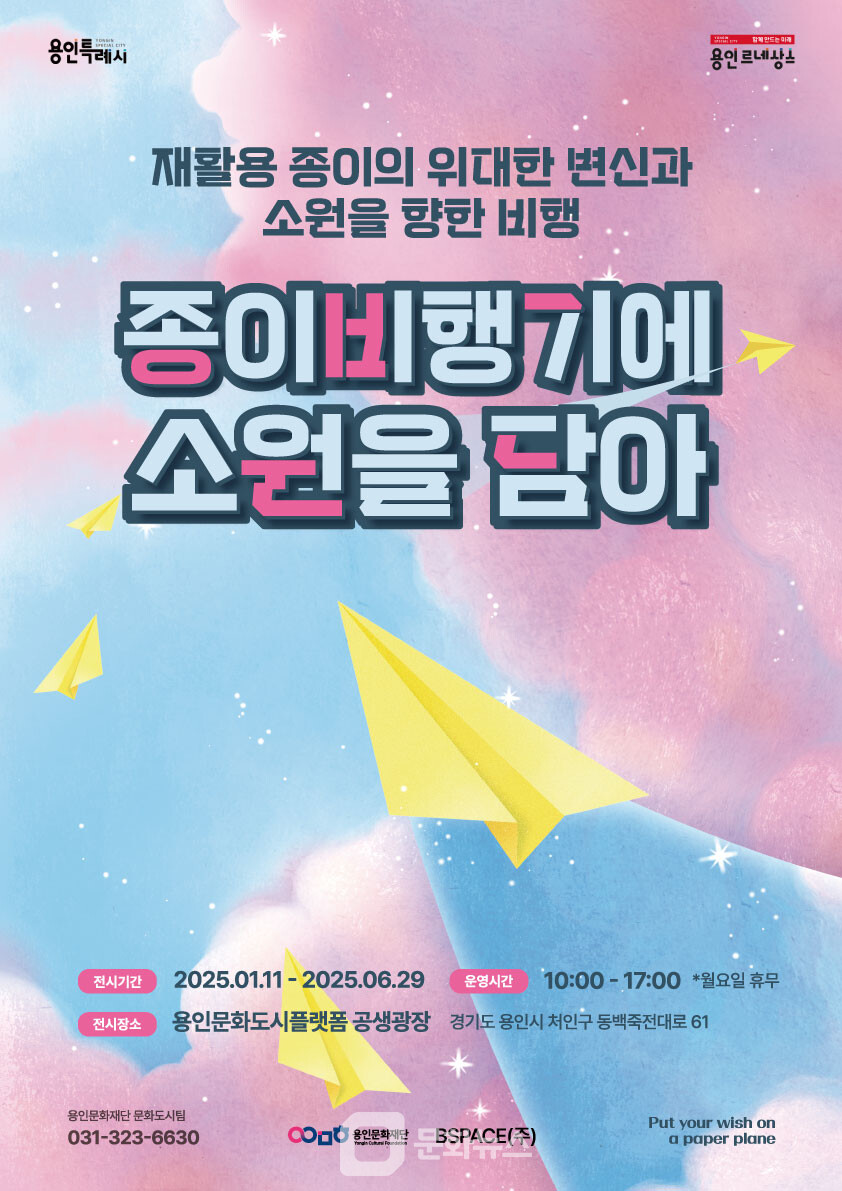 전시 '종이비행기에 소원을 담아' 관련 자세한 내용은 용인문화재단 홈페이지를 확인하거나 문화도시팀으로 문의하면 된다.