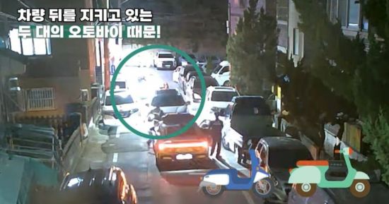 골목길로 도주한 차량 뒤를 오토바이 2대가 막아서고 있다. 경찰청 유튜브 |