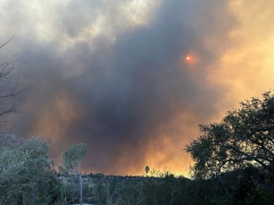 연기로 뒤덮인 미 로스앤젤레스(LA) 카운티 라카냐다 플린트리지의 산지. 연합뉴스 |