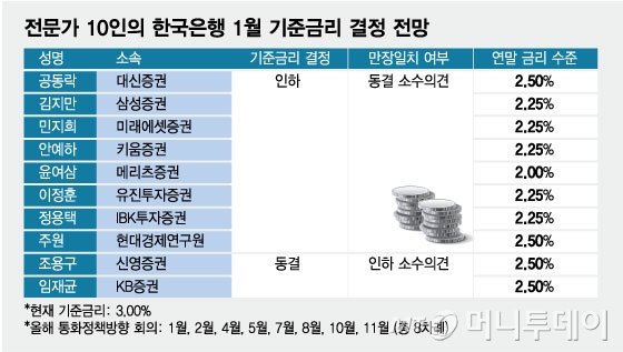 전문가 10인의 한국은행 1월 기준금리 결정 전망/그래픽=임종철 |