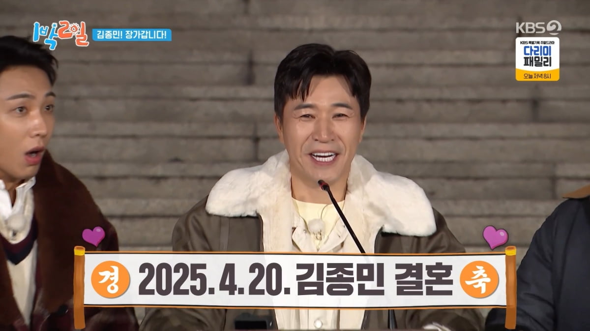 12일 방송된 KBS 2TV '1박 2일'에서는 맏형 김종민이 결혼식 날짜를 최초 공개했다.