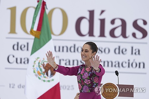 셰인바움 대통령은 12일(현지시간) 멕시코시티 소칼로 광장에서 연 취임 100일 기념행사에서 "차기 미 행정부와 조정하고 협력하되 절대 종속되지 않을 것"이라며 "멕시코와 미국이 서로 존중하며 대화를 우선시하는 관계를 맺을 것을 확신한다"고 말했다.