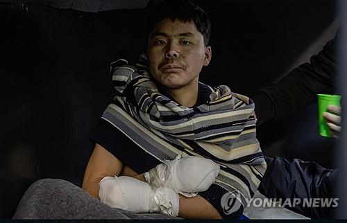 ▲ (고개 끄덕이며) 1월 3일에…. (통증이 있는지 잠시 얼굴을 찡그린 뒤 다시 말을 이으며) 와서 옆에 동료들이 죽은 것을 보고, 그러고 방공호에 숨어있다가 5일에 부상당하고….