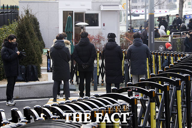 윤석열 대통령 측은 윤 대통령이 대통령 경호처에 체포영장 집행 시 무기 사용을 지시했다는 일각의 주장에 반박했다. 윤석열 대통령에 대한 2차 체포영장 집행이 임박한 13일 오전 서울 용산구 한남동 대통령 관저 앞이 긴장감으로 감돌고 있다. /서예원 기자 |