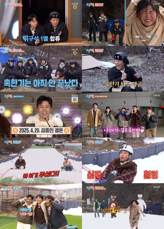'1박 2일' 팀은 맏형 김종민의 결혼 발표와 함께 2025년 달력을 완성해야 하는 새해 첫 여행을 힘차게 시작했다. 본격적인 달력 사진 촬영에 나선 멤버들이 겨울을 시작으로 봄, 여름, 가을 콘셉트의 달력을 어떻게 만들어낼지 시청자들의 궁금증이 높아지고 있다. /seon@osen.co.kr