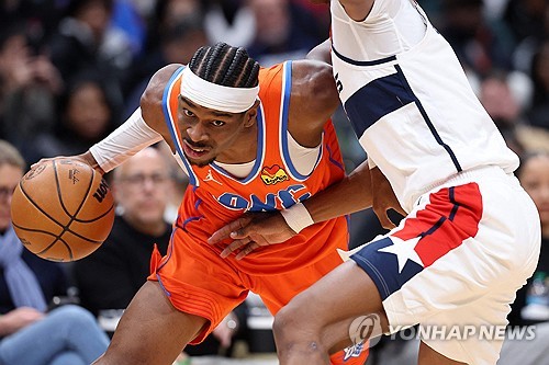 (서울=연합뉴스) 이의진 기자 = 미국프로농구(NBA) 서부콘퍼런스 선두를 달리는 오클라호마시티 선더가 동부 최하위 워싱턴 위저즈를 41점 차로 대파했다.
