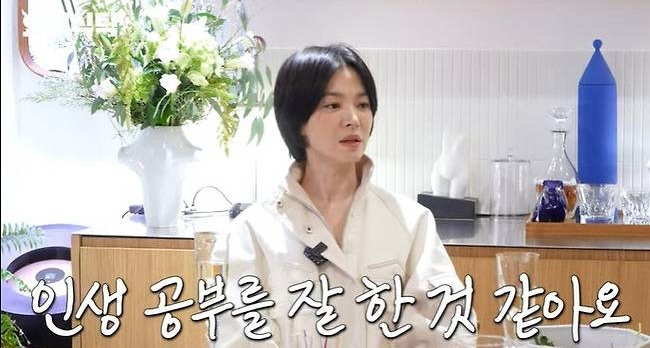 정재형이 지금 편안해 보인다고 하자 송혜교는 "요즘에 그런 얘기 많이 듣는다. 되게 편해 보인다고"라며 "많은 일들도 살면서 좋은 경험들도 많이 했고 여자로서, 배우로서 힘든 경험들도 있어서 행복한 경험들도 있었고 여러 가지 경험들을 다 해서 인생 공부를 잘한 거 같다"라고 말했다.