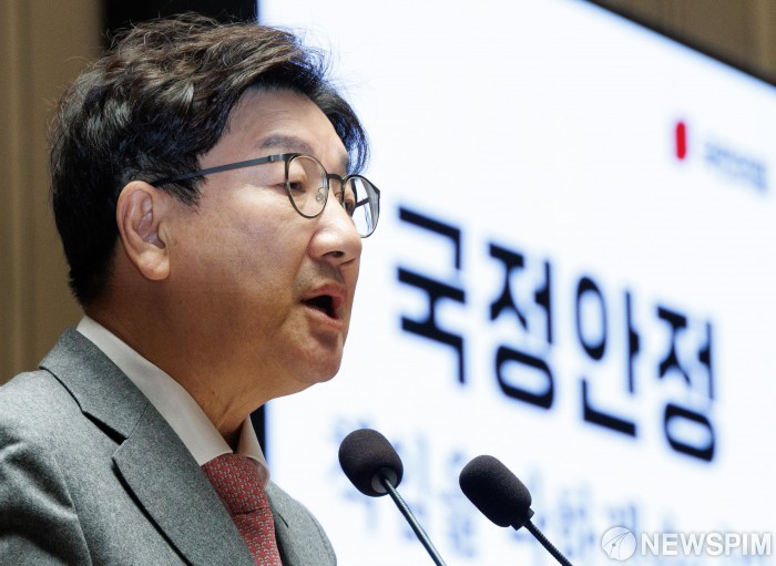 [서울=뉴스핌] 윤창빈 기자 = 권성동 국민의힘 원내대표가 13일 오후 서울 여의도 국회에서 열린 의원총회에서 모두발언을 하고 있다. 2025.01.13 pangbin@newspim.com