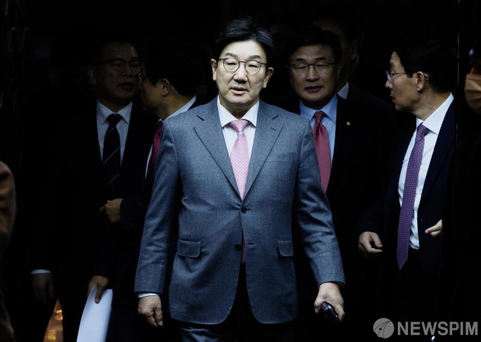 [서울=뉴스핌] 윤창빈 기자 = 권성동 국민의힘 원내대표가 13일 오후 서울 여의도 국회에서 열린 의원총회에 참석하고 있다. 2025.01.13 pangbin@newspim.com