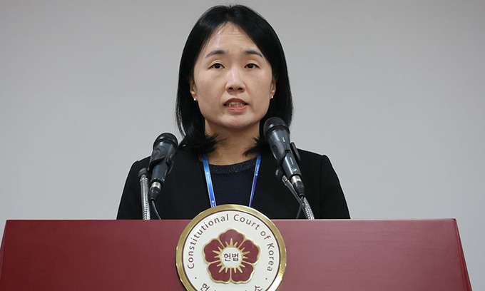 천재현 헌법재판소 공보관이 13일 서울 종로구 헌법재판소 별관에서 브리핑하고 있다. 연합뉴스 |