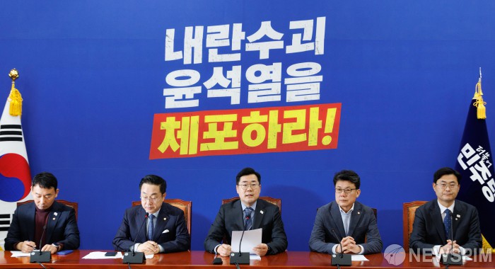 [서울=뉴스핌] 윤창빈 기자 = 박찬대 더불어민주당 원내대표가 14일 오전 서울 여의도 국회에서 열린 원내대책회의에서 모두발언을 하고 있다. 2025.01.14 pangbin@newspim.com