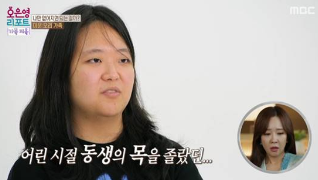 딸은 “어렸을 때부터 그랬다 보니까 동생이 없었으면 좋겠다고 생각했고 동생한테는 아직도 미안한 건데 동생을 좀 심하게 괴롭혀서 죽일 뻔한 적이 있다. 동생 목도 조르고 그랬다. 진짜 없었으면 좋겠기에”라고 전해 충격을 안겼다.