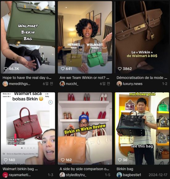 워킨백과 버킨백 리뷰 영상들 [사진출처=틱톡] |