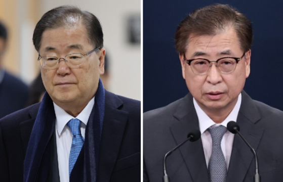 정의용 전 국가안보실장(왼쪽)과 서훈 전 국가정보원장. 〈사진=연합뉴스〉 |