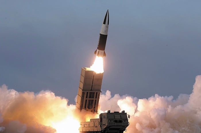 북한이 14일 탄도미사일을 쐈다. 지난 6일 중거리급 극초음속 탄도미사일 발사 이후 8일 만이다. 사진은 북한이 2022년 1월 KN-24를 발사하는 모습. /조선중앙TV 연합뉴스 |