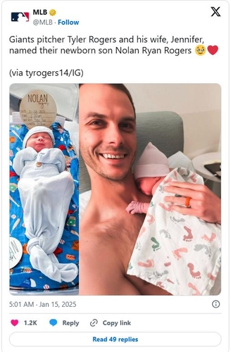 MLB닷컴은 15일(이하 한국시간) 샌프란시스코 자이언츠의 언더핸드 투수 로저스가 새로 태어난 둘째 아들의 이름을 '놀런 라이언 로저스'로 지었다고 전했다.