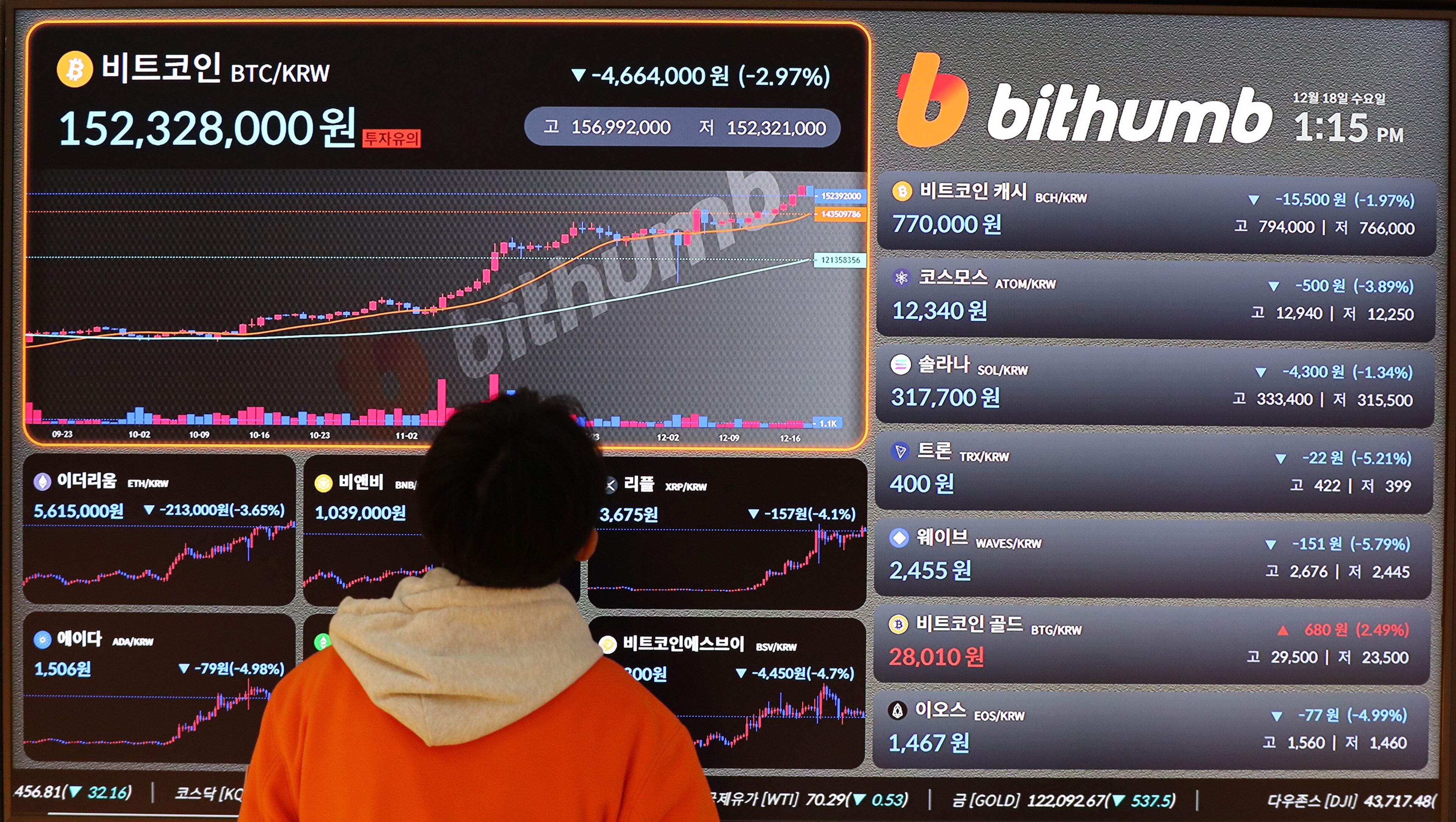 서울 서초구 빗썸라운지 전광판에 비트코인 등 가상자산 시세가 표시되고 있다. /뉴스1 |