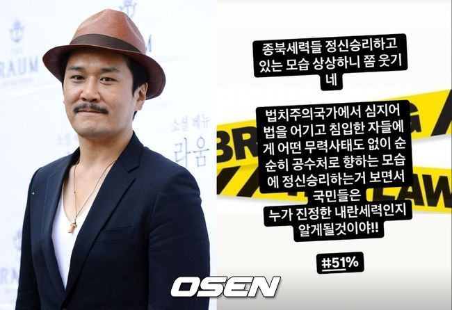 이어 "여러분 지금부터 진짜 나라바로세우기의 시작점입니다. 기운냅시당!!"이라며 "#자유민주주의수호 #stopthesteal #breakingthelaw" 등의 해시태그를 덧붙였다.