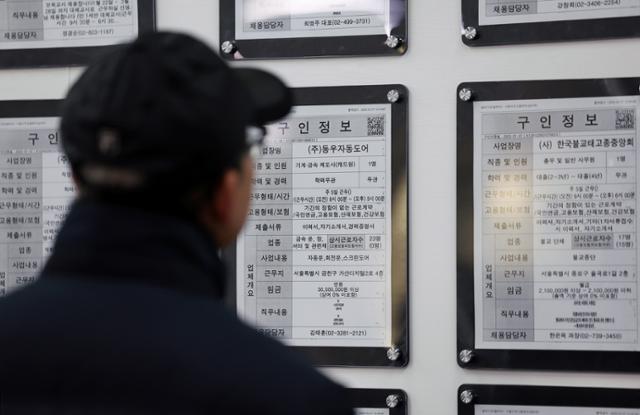 15일 서울의 한 고용복지플러스센터에서 구직자가 일자리 정보를 확인하고 있다. 뉴시스 |