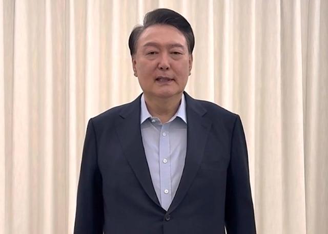윤석열 대통령이 고위공직자범죄수사처와 경찰이 체포영장 재집행에 나선 15일 관저에서 촬영된 것으로 보이는 영상을 통해 '국민께 드리는 말씀' 제하의 대국민 담화를 발표하고 있다. 대통령실 제공 |
