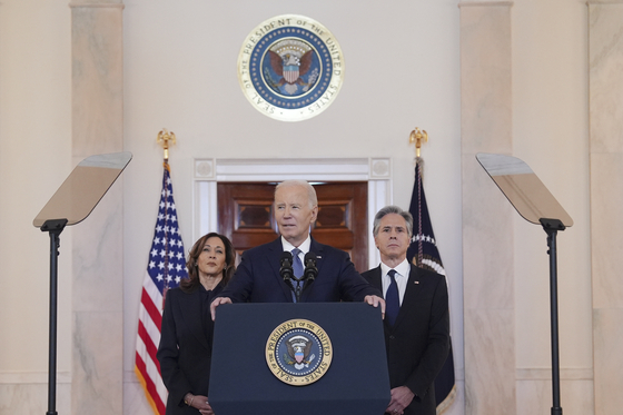 카멀라 해리스 부통령, 토니 블링컨 국무장관과 함께 연단에 선 바이든 대통령은 “아주 좋은 오후”라며 “드디어 휴전 및 인질 석방 협상이 체결됐다는 걸 발표할 수 있게 됐기 때문”이라고 말했다.