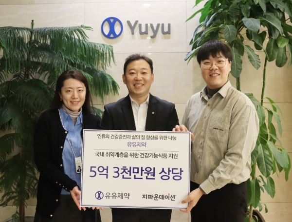 [헤럴드경제=함영훈 기자] 유유제약(대표 유원상, 박노용)이 국내 취약계층을 위해 5억 3,000만 원 상당의 건강기능식품을 국제개발협력NGO 지파운데이션에 기탁했다.