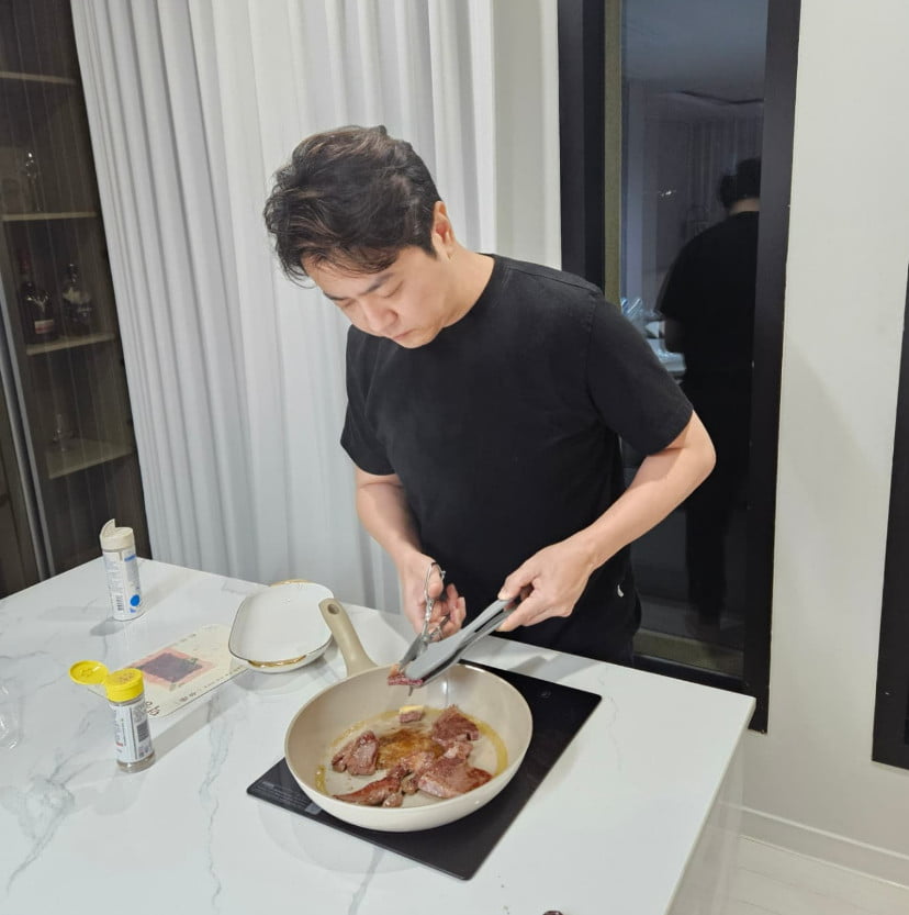 최동석은 지난 15일 자신의 인스타그램에 "고기 구울 때 진짜 진심이지요. 공부를 이렇게 했어야해"라는 글과 함께 여러 장의 사진을 게재했다.