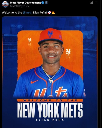 메츠는 16일(이하 한국시간) 도미니카공화국 출신 유격수 엘리안 페냐(17)와 500만달러(약 72억원)에 입단 계약을 맺었다.