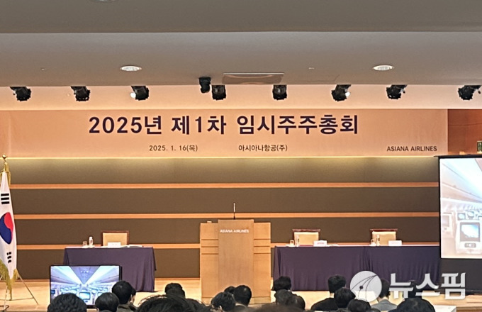 한편 이날 주주총회 기준이 된 아시아나항공의 총주주수는 14만6289명, 발행주식총수 2억599만711주다. 이날 81.96%(약 1억6883만2660주)에 대한 의결권이 행사되면서 주주총회 정족수가 충족됐다. 현장에 참여한 주주 숫자는 218명이었다.