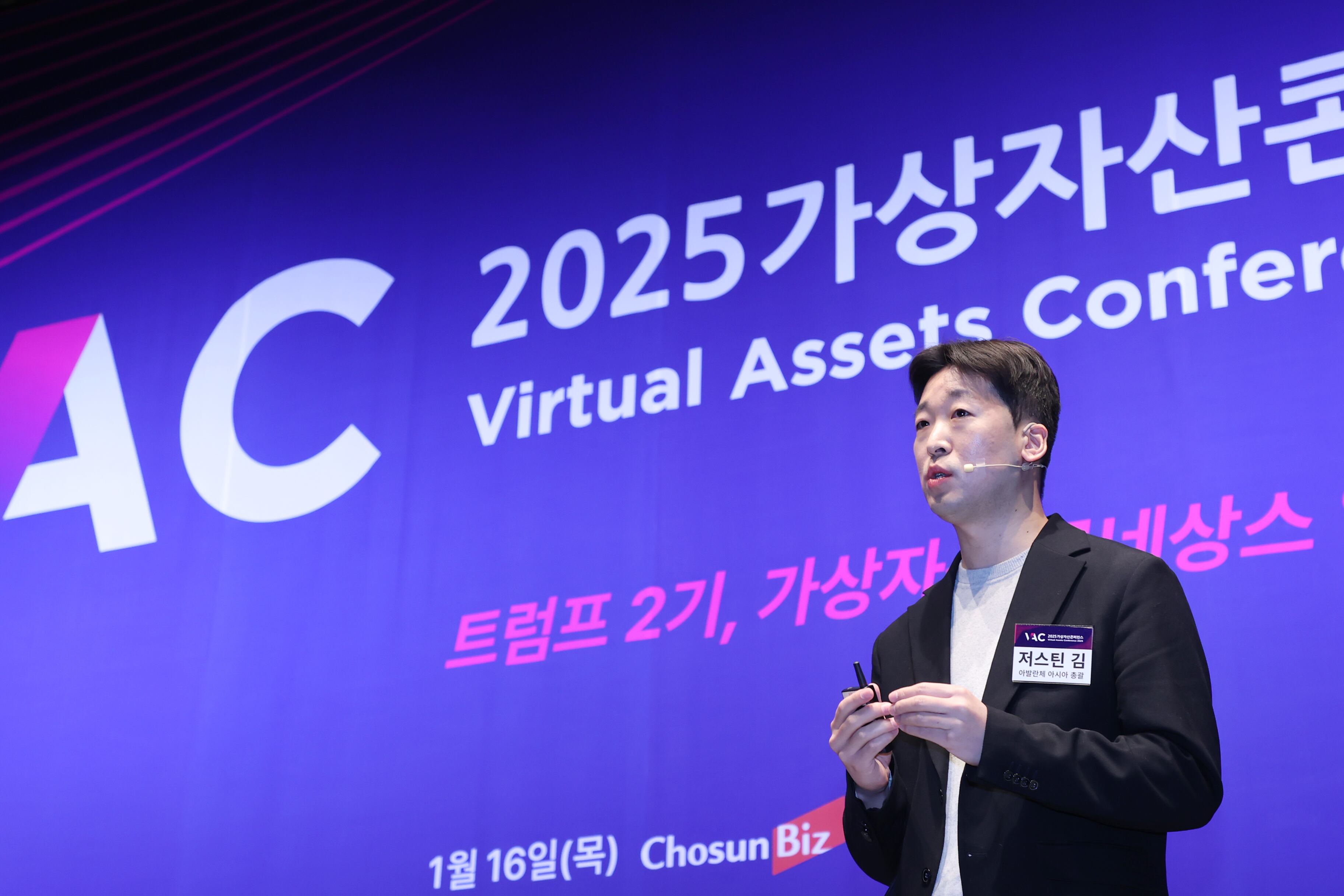 저스틴 김 아발란체 아시아총괄이 16일 서울 소공동 웨스틴조선호텔에서 조선비즈 주최로 열린 ‘2025 가상자산콘퍼런스’에서 강연을 하고 있다. /조선비즈 |