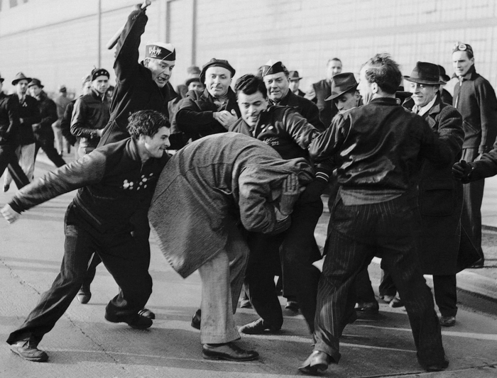 1942년 최초의 퓰리처상 사진부문 수상작은 포드 자동차 공장에서 파업에 참여한 노동자가 폭행당하는 장면을 포착한 사진이다. 12만 명의 노동자가 파업에 들어갔다. 군중 속에서 갑자기 8명의 사내가 나와 몽둥이와 주먹으로 노동자를 폭행하기 시작했다. 사진을 촬영한 밀턴 브룩스는 카메라를 코트에 숨긴 채 군중 속에 파고들어 사진을 찍었다.