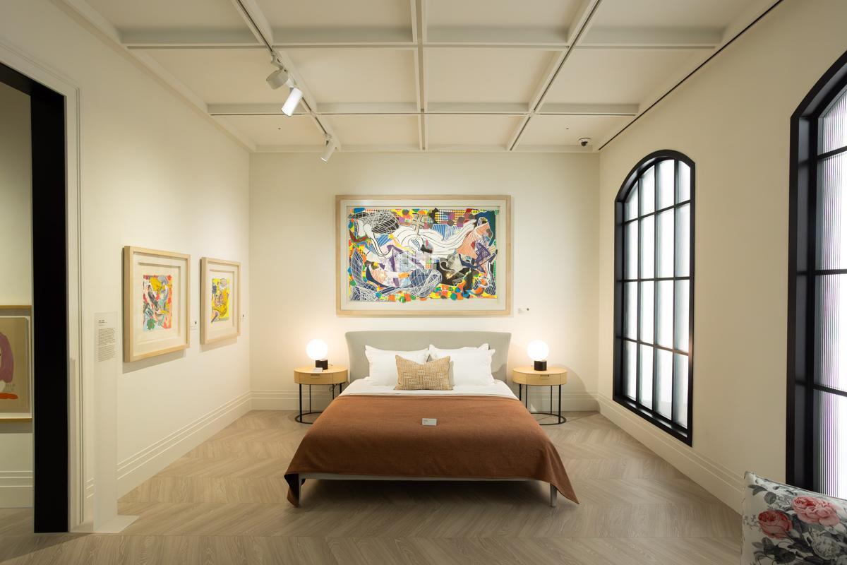 이번 전시는 부부나 모자 같은 5명의 가상 인물을 먼저 창조했다. 그리고 이들의 취향과 정체성, 감각을 설정해 공간 디자인으로 표현했다. 첫 번째 공간은 상반된 두 개의 취향이 공존하는 ‘스플릿 하우스’다. 두 개의 입구로 분리된 집은 한쪽은 아들, 한쪽은 엄마의 공간이다. 20대 아들의 공간엔 애니메이션이나 그래픽 스타일이 두드러지는 일본과 한국 젊은 작가 작품들이 배치됐다. 반면 엄마의 자리엔 이승조, 박서보, 김환기 등 원로 작가 작품들이 걸렸다.